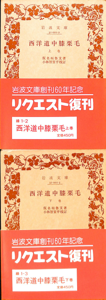 西洋道中膝栗毛 上下巻全2冊揃 岩波文庫 緑 1-2、3 仮名垣魯文 著 小林智賀平 校訂