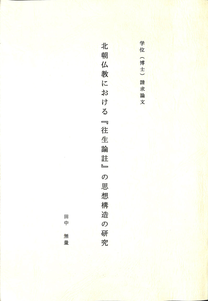 北朝仏教における 往生論註 の思想構造の研究 田中無量